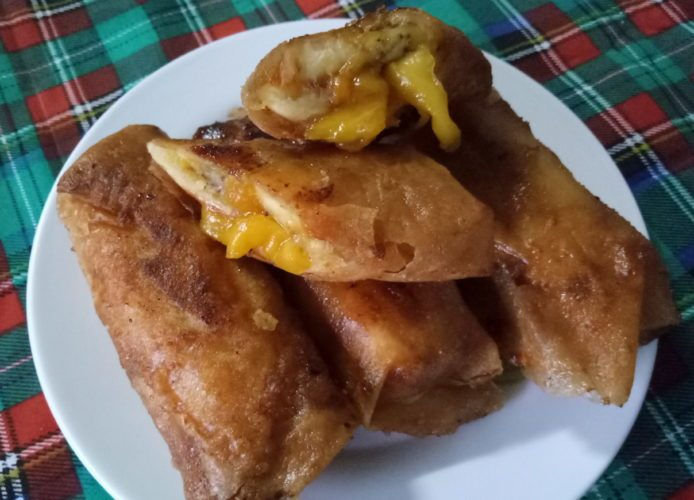 1. Coat all the banana slices with sugar. 2. Put some sweetened jackfruit in the middle of two banana slices. It’s as if you are making a little sandwich. 3. Place 1 lumpia wrapper on a flat surface then put the banana and jackfruit on the center of it. 4. Fold and wrap. Seal the lumpia wrapper with water. 5. Repeat steps 3 & 4 until all bananas are wrapped. 6. Heat oil in a pan. Fry the turon until both sides are golden brown. 7. Remove from heat and drain excess oil from the turon. 8. Serve and enjoy your mini turon with langka!